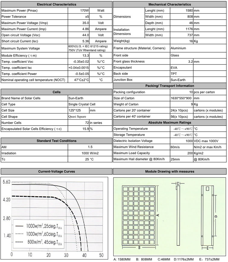 Ningbo Solar Electric TDB125X125-72-P 170W Module (149.8 CEC PTC Rating)
